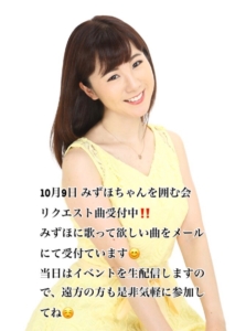 10月9日(土)第11回みずほちゃんを囲む会開催!リクエスト曲、募集中!