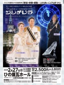 ひの煉瓦ホールで上演されるミュージカル「シンデレラ」にねずみ役とお妃様(王子の母)役で出演します。